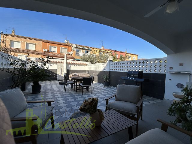 Erdgeschoss: Vor dem Haus befinden sich einen Carport und Garten, eine Eingangshalle, eine voll ausgestattete Küche, ein Gäste-WC, ein großes Wohn-Esszimmer mit Zugang zur überdachten Terrasse und einem 65 m² großen Garten. Der Garten bietet viel Platz zum Essen im Freien, Lesen oder Grillen mit Freunden. Die Möglichkeit zum Bau eines Swimmingpools besteht.