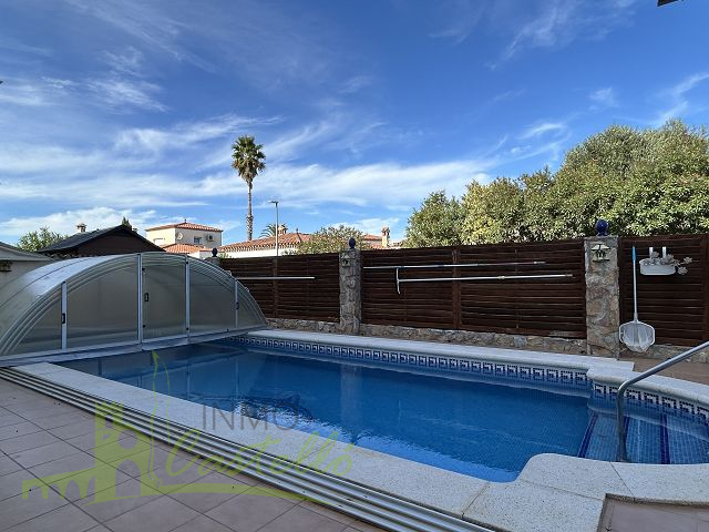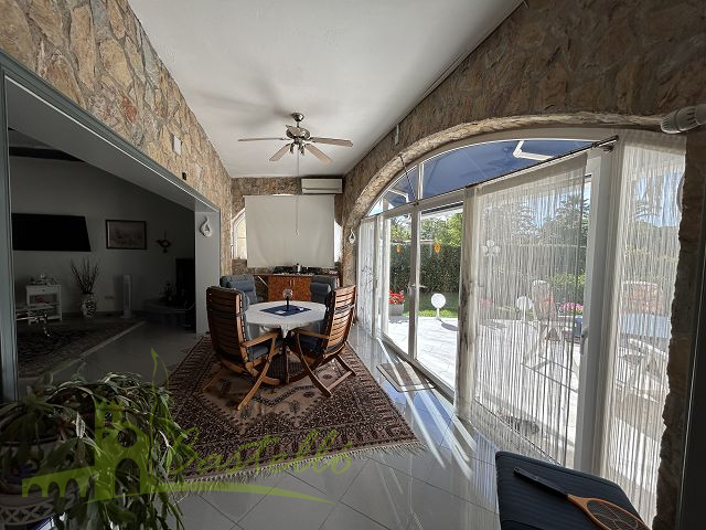 A la segona zona exterior amb piscina de sal i climatitzada, que es pot cobrir amb un sostre de vidre, és especialment bonica. Al costat hi ha la zona d'estar amb un racó de barbacoa. Tenim un espai ampli per a aparcament d'un cotxe i un garatge.