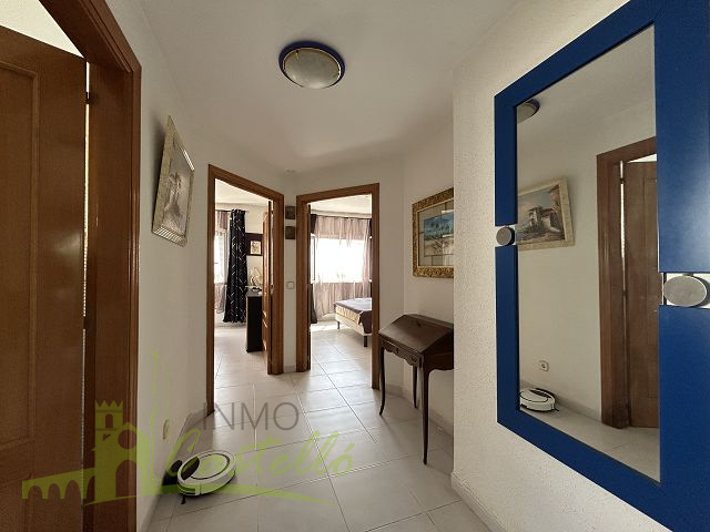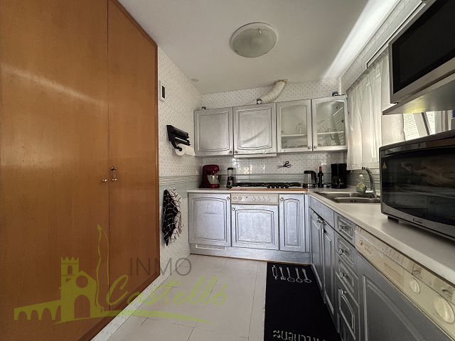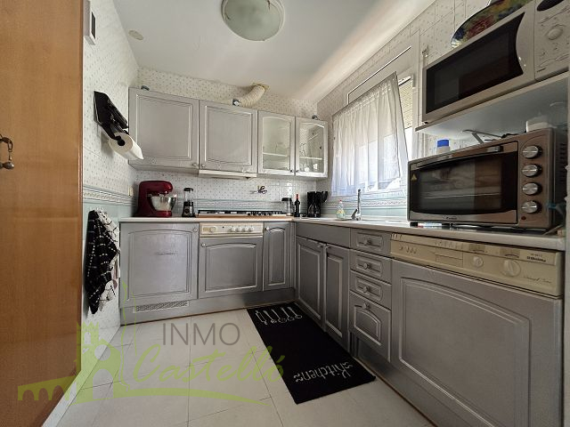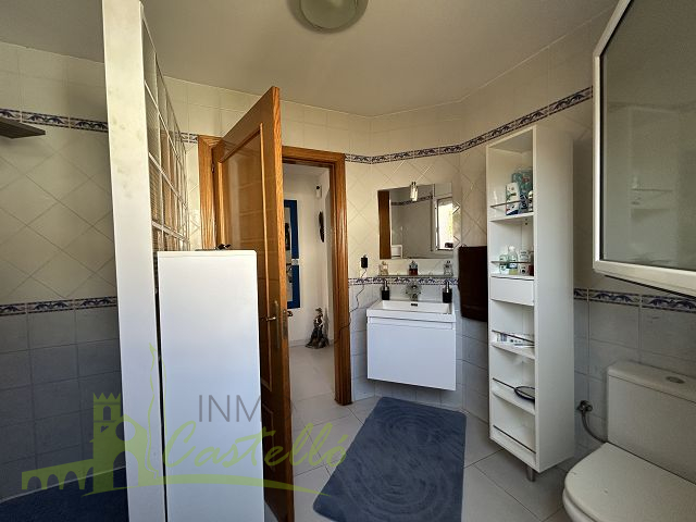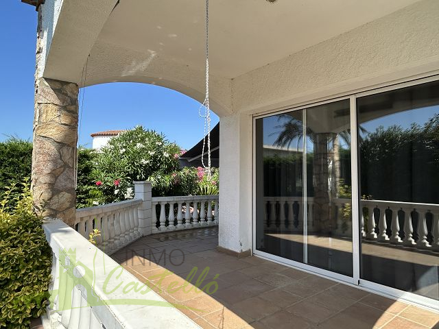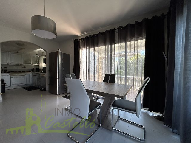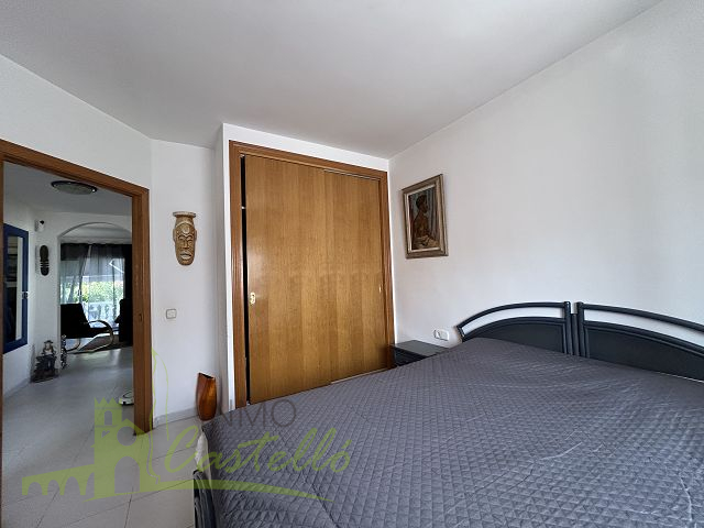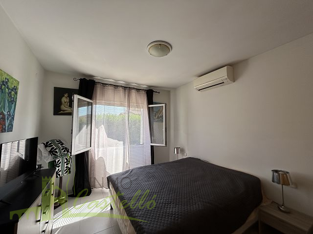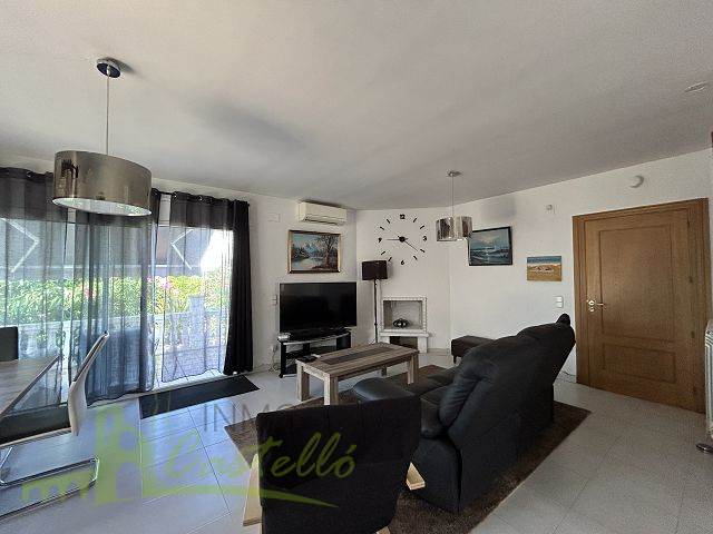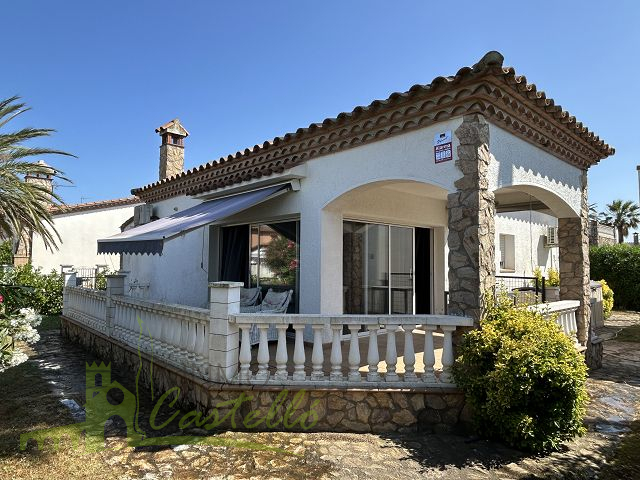 This 107-square-meter house has everything you need for your sunny vacation, set on a 478-square-meter plot. The entrance leads to a generous, light-filled living room with a fireplace and views of the garden and communal pool through large French doors. The large open-plan kitchen is located to the left of the living room. A short corridor leads to the house's two spacious double bedrooms with built-in wardrobes, as well as a full bathroom with a shower. The property also has a separate toilet in the entrance area and a storage room for additional space. The 24-square-meter terrace, which adjoins the living room, overlooks the small garden and communal pool, with enough space for comfortable seating and a barbecue. There is a 20-square-meter garage (6.20 x 3.20) with an electronic gate directly next to the house.