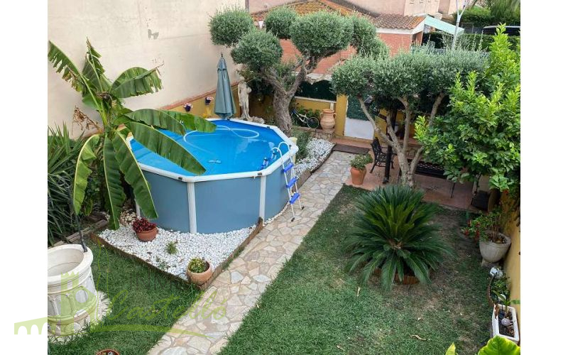 From the living room and from the kitchen you have access to the terrace and garden at the back with pool and barbecue.